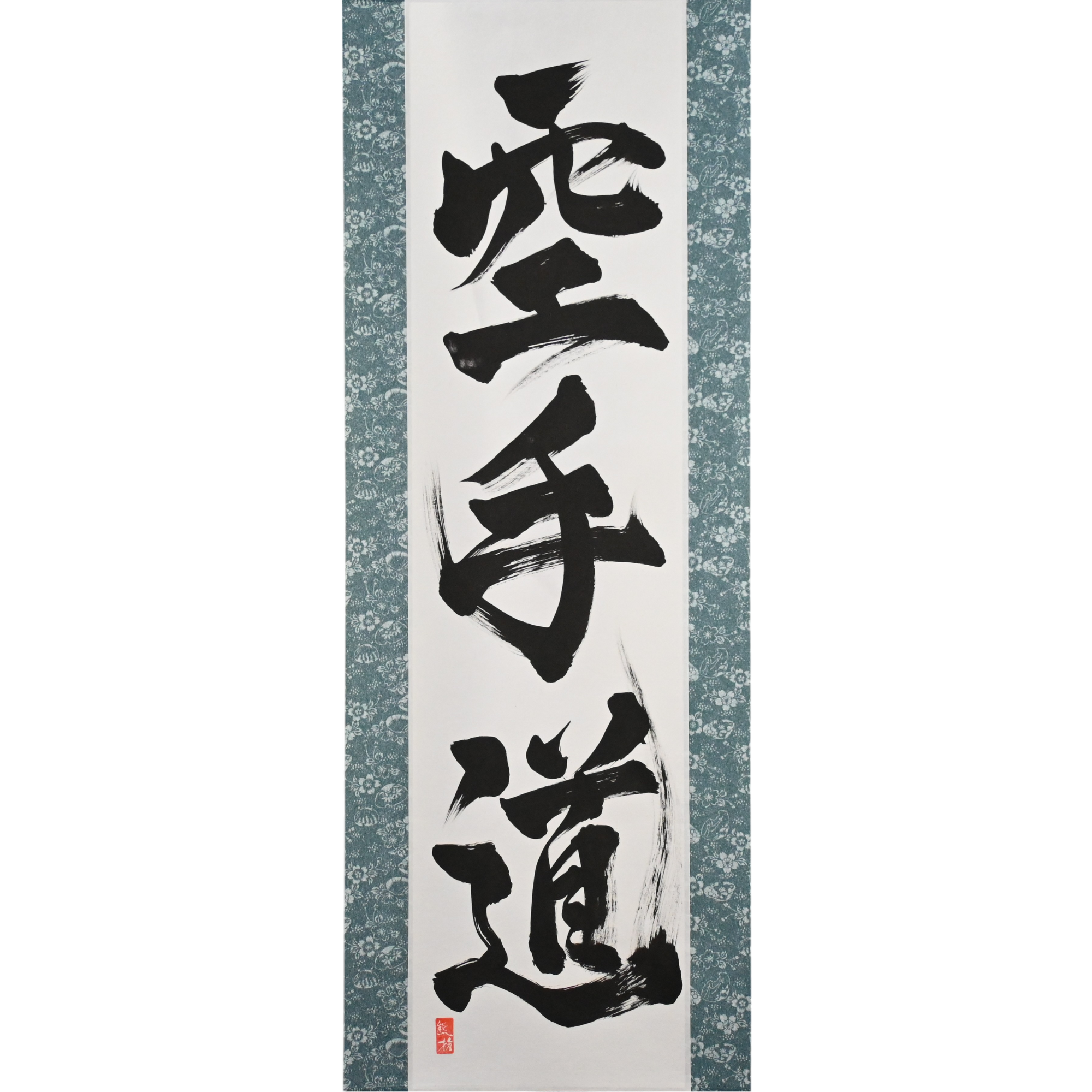 Ce rouleau de calligraphie présente la puissante phrase 空手道 (Karate-do) — non seulement un art martial, mais un voyage de toute une vie fait de discipline, de respect et de force intérieure.