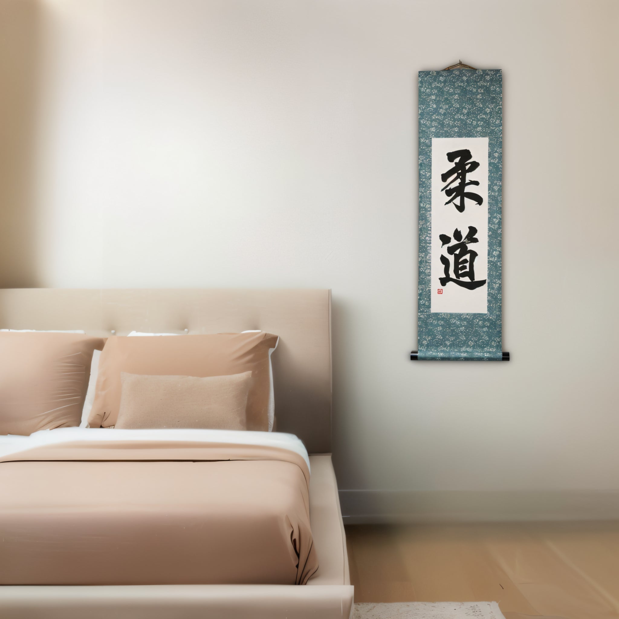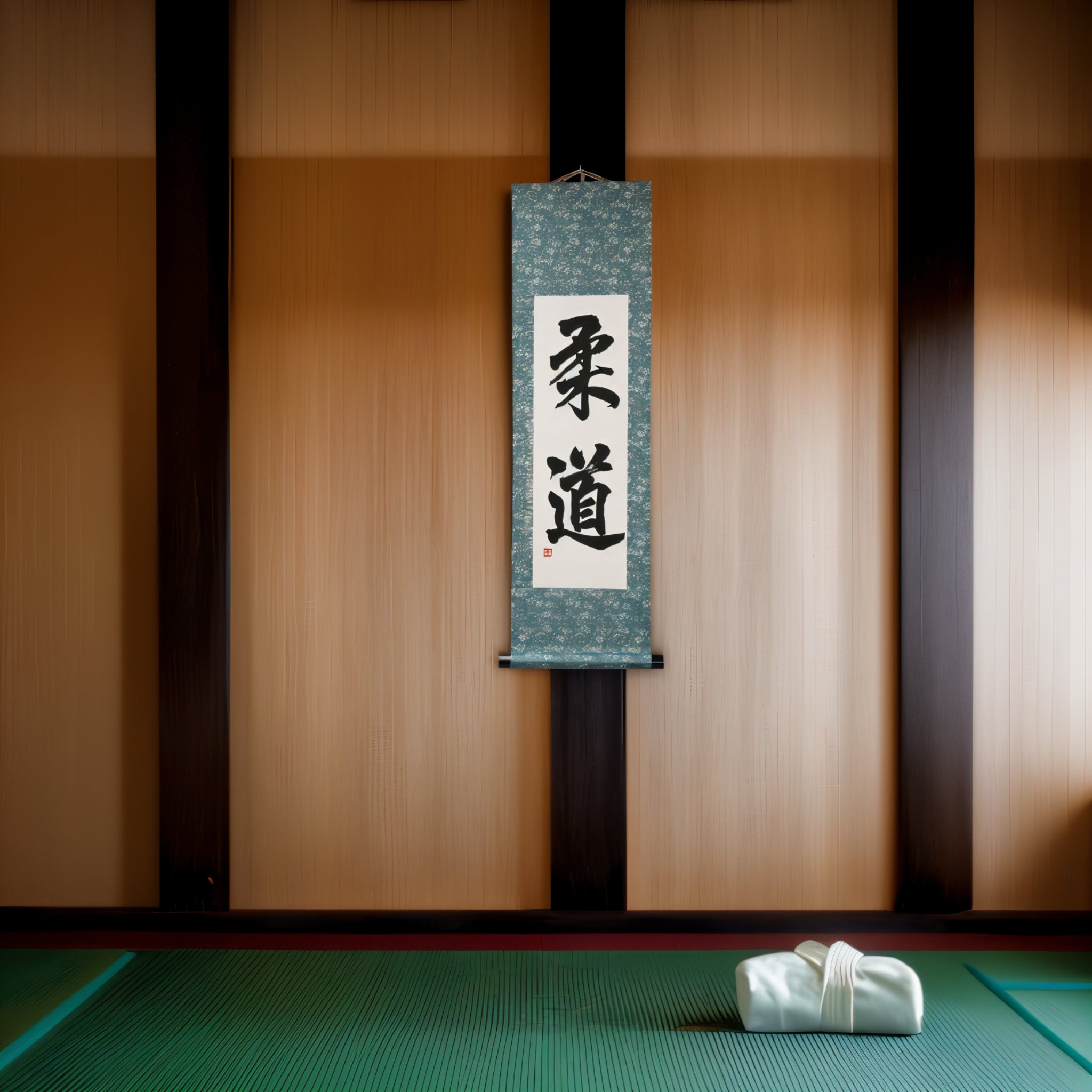 Habe diese Schriftrolle genau dort aufgehängt, wo ich mich vor dem Training aufwärme. Sie gibt mir Fokus. Ich habe die türkisfarbene Version gewählt, und sie passt perfekt zum Rest des Raumes. Sogar meine Kinder haben sie bemerkt und gefragt, was sie bedeutet. Jetzt wollen sie auch Judo ausprobieren!
